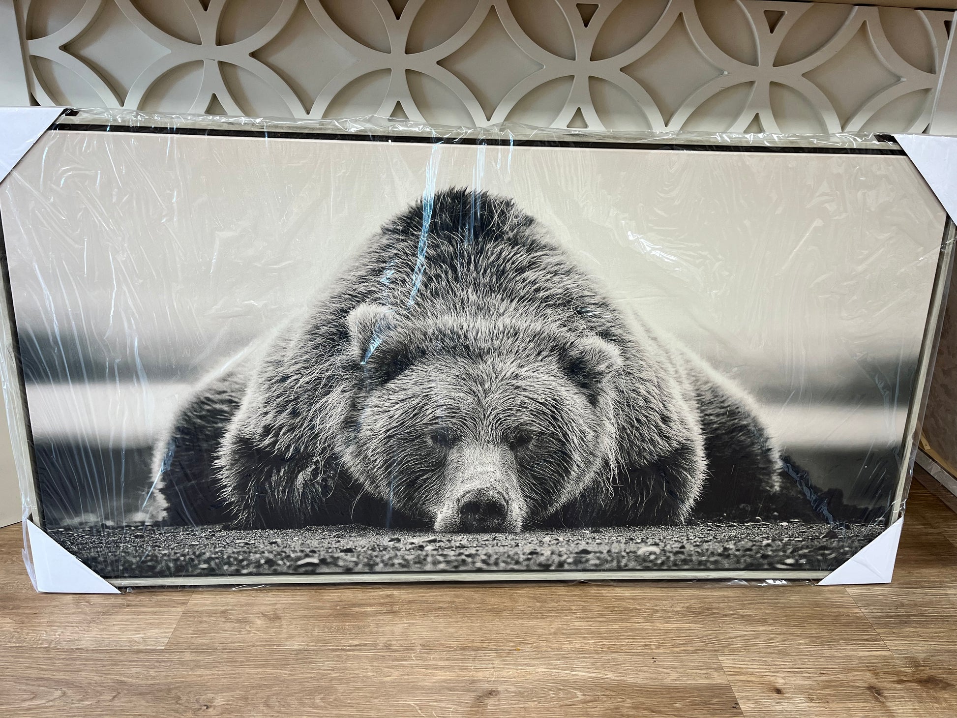 The "Bear" canvas, measuring 63x32 inches, offers a striking focal point for any space. Its sizable dimensions make it ideal for creating a bold statement on your wall. Crafted with attention to detail, this canvas expertly captures the essence of the bear, adding both character and a touch of wilderness to your decor. Perfect for enhancing living rooms, offices, or cabins, it brings nature-inspired artistry with a sophisticated edge.