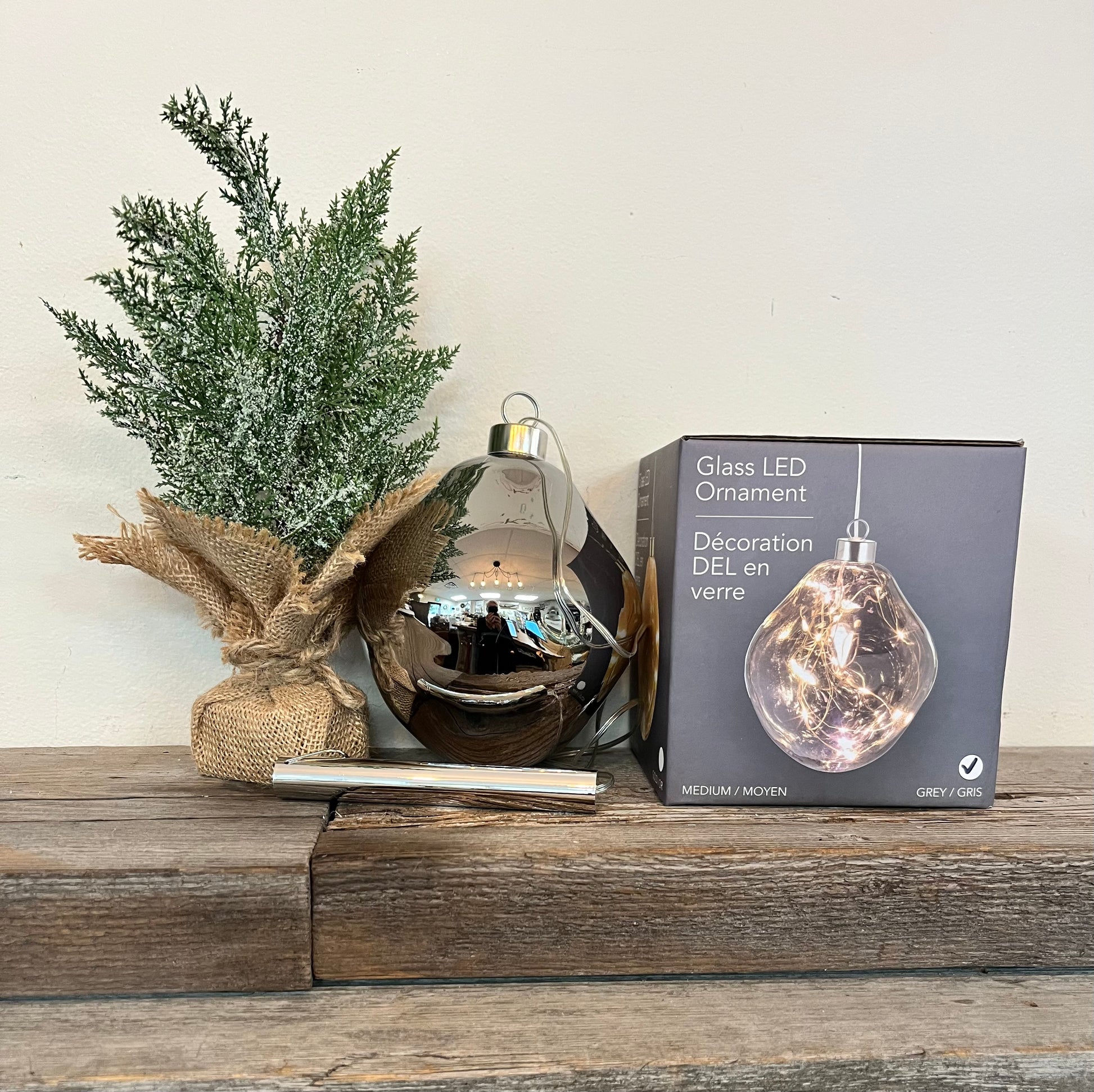 Glass LED Hanging Ornament Grey Medium