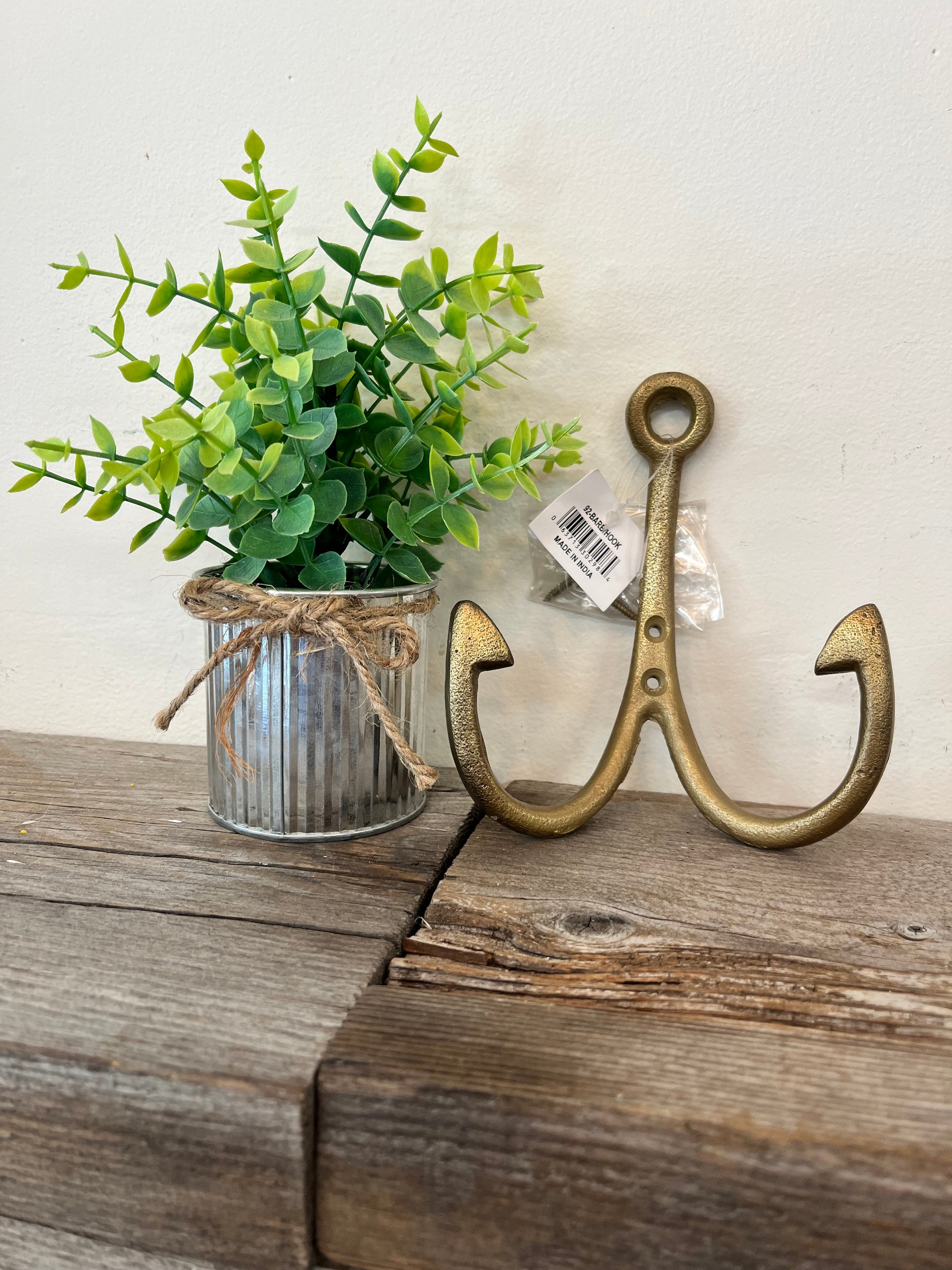 Crafted with precision, the Gold Anchor Hook measures 6x5 inches, providing a sturdy and reliable hold for your décor or essentials. Its elegant gold finish combines durability with a sophisticated aesthetic, making it an ideal choice for both functional support and stylish accents. Perfect for enhancing any space, this hook promises strength and timeless appeal.