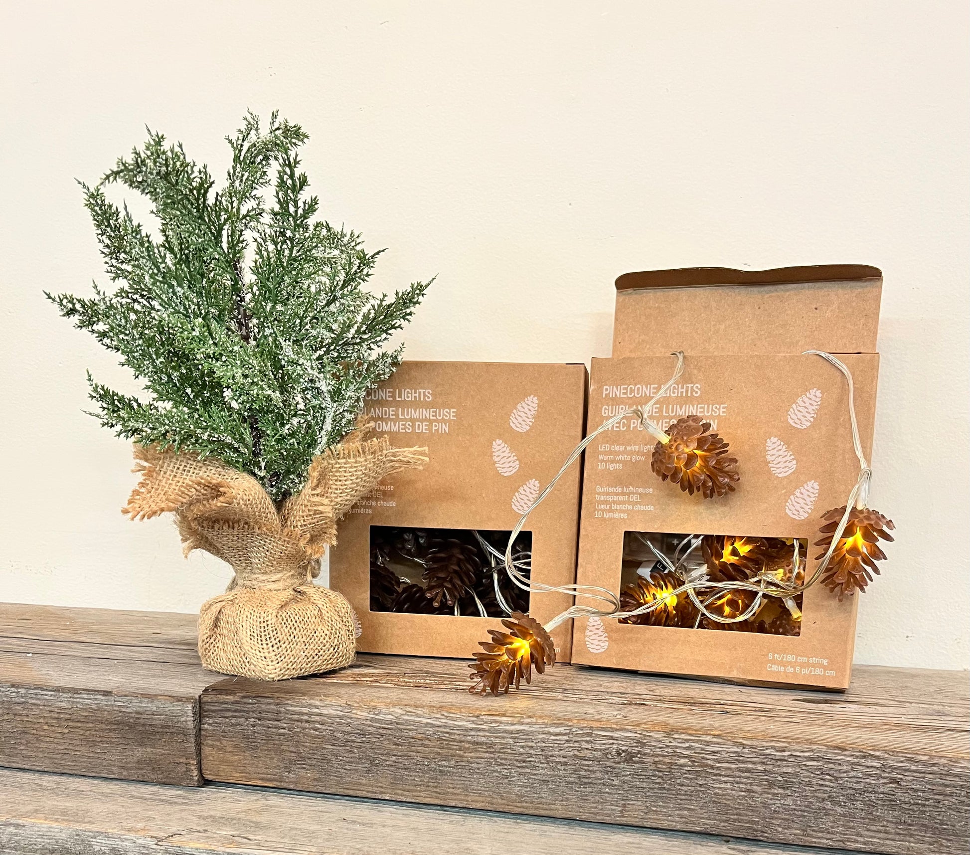 Illuminate your space with these charming pinecone string lights, featuring 10 warm white LED bulbs strung along a clear wire. The 6-foot length makes them ideal for draping across mantels, wrapping around banisters, or creating ambient lighting in any room. Energy-efficient LEDs provide a soft, inviting glow perfect for seasonal décor or year-round ambiance. The delicate pinecone design adds natural elegance to your home, while the durable construction ensures reliable performance season after season.