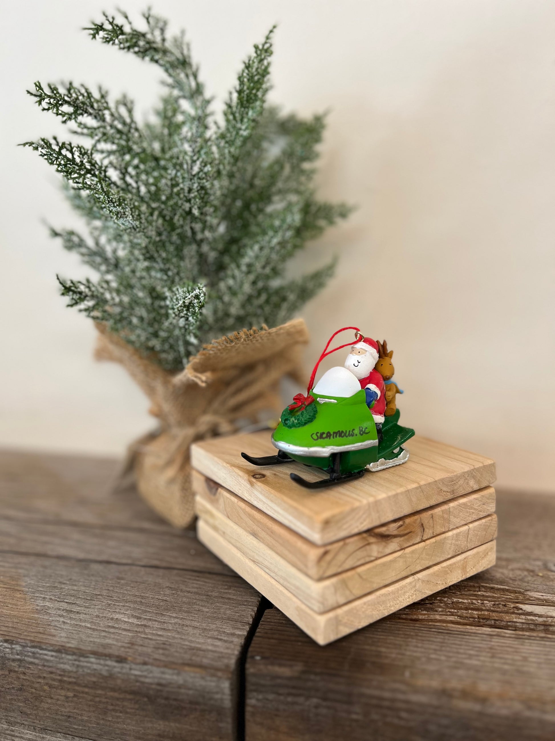 Celebrate the festive season with the “Snowmobile” Santa hanging ornament, a perfect addition to your holiday décor. This expertly crafted “Sicamous” ornament captures Santa in a dynamic snowmobile pose, blending traditional Christmas charm with a touch of winter adventure. Ideal for adding a unique and spirited accent to your tree, it also makes a thoughtful gift for those who love both the holidays and outdoor winter fun. Enhance your seasonal decorations with this distinctive piece that brings warmth and excitement to any space.