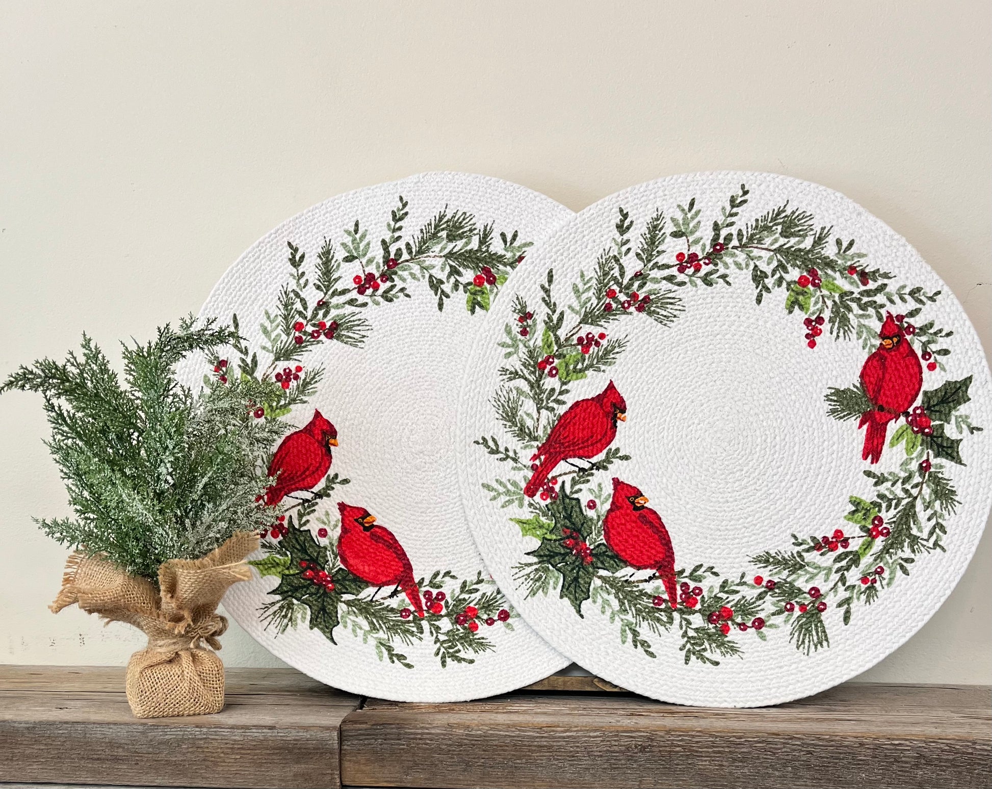 Elevate your holiday table with the “Winter Cardinal” Braided Christmas Placemats. Expertly crafted to showcase festive charm, these placemats feature a braided design that adds texture and durability. The cardinal motif brings seasonal warmth and elegance, enhancing your Christmas décor while protecting your surfaces. Perfect for both everyday holiday meals and special gatherings, these placemats combine classic style with practical function to ensure a polished, inviting setting.