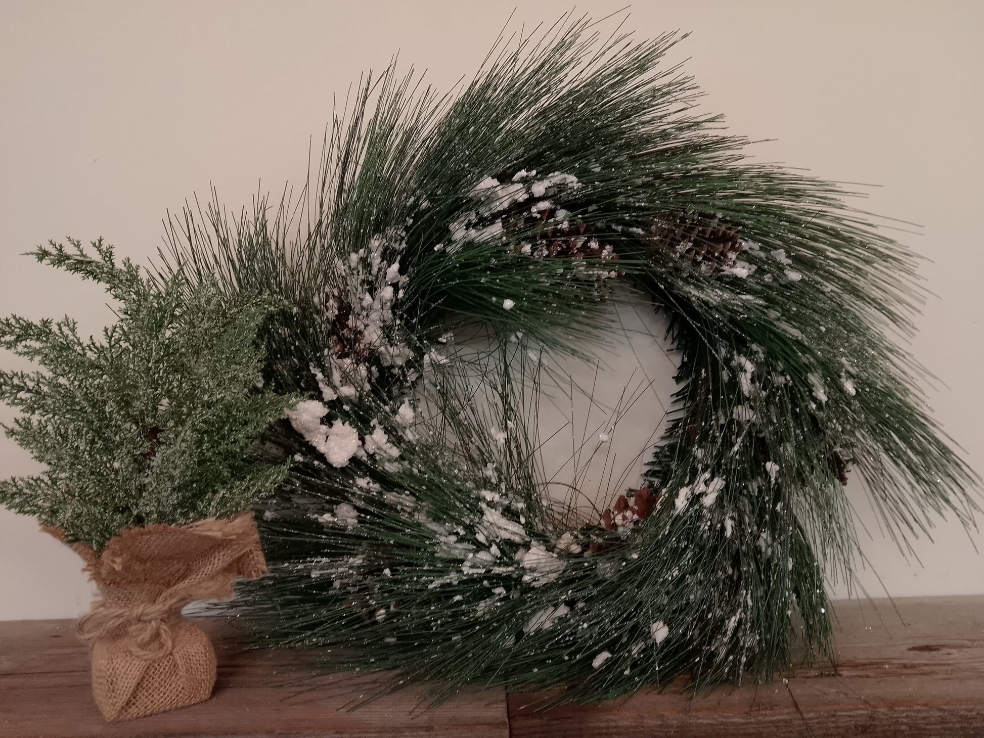 Wreath with Pine Cones/Snow